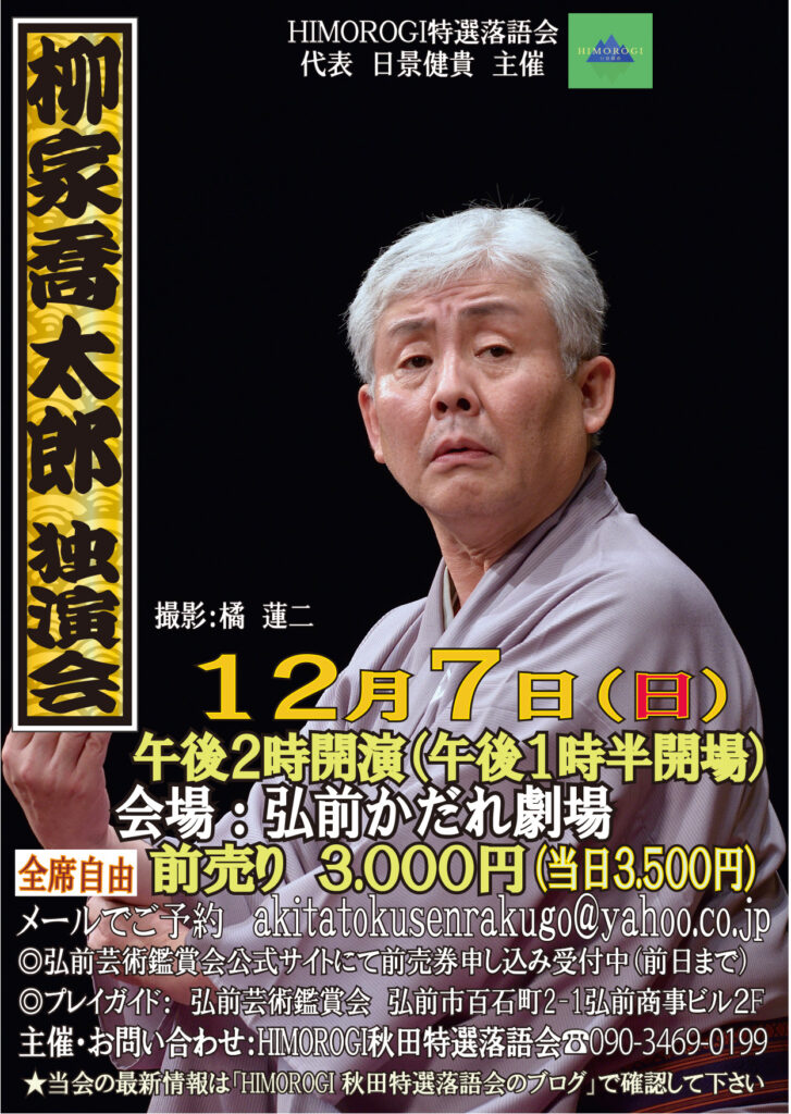 🔴津軽弘前落語会<11月30日(日)14:00開演>