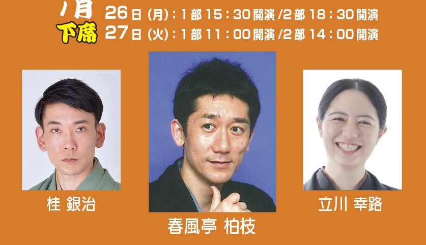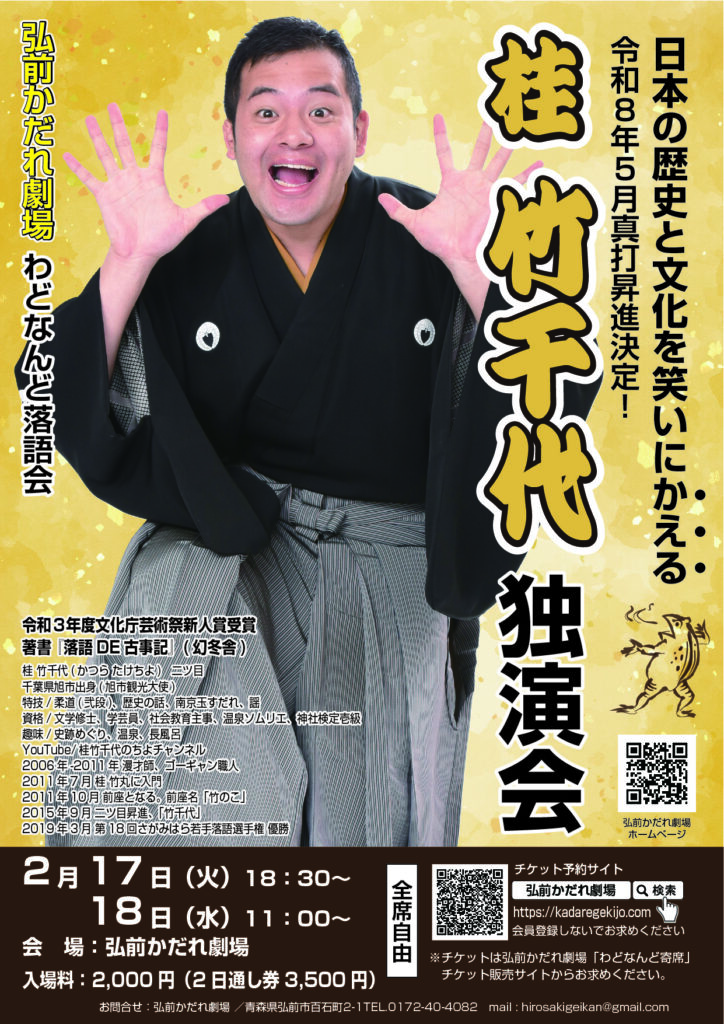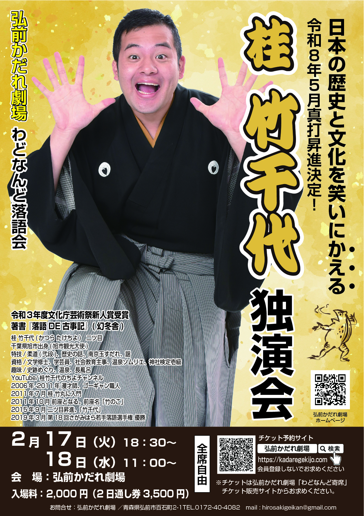 🔴桂竹千代独演会<2月17日(火)18:30開演 18日(水)11:00開演 入場料:2日通し券 3,500円 各回 2,000円>