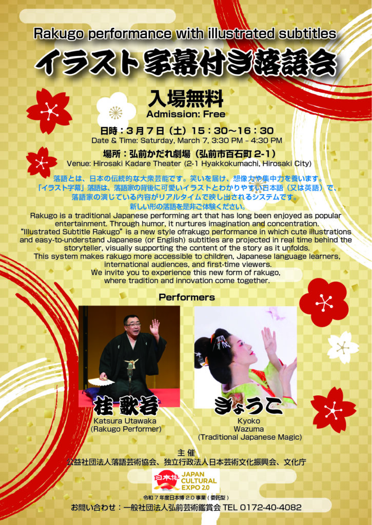 🔴わどなんど寄席4月〜<毎月14日(青森)、15日(弘前)、24日(青森)、25日(弘前)開催>