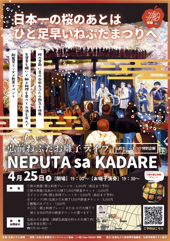 青森会場:渡邉源四郎酒店しんまち本店 弘前会場:弘前かだれ劇場 <共通>入場料 2,500円 高校生以下 1,000円